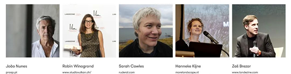 以下五位是Landezine奖主要评审团成员,分别是Joao Nunes、Robin Winogrond、Hanneke Kijne、Sarah Cowles和Zaš Brezar。其余评审团由编辑组成。